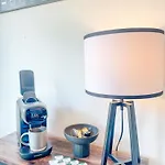 - ❓Does the holiday home feature a kitchen?Certainly, the holiday home provides a fully equipped kitchen along with a microwave oven, coffee and tea making equipment, and a refrigerator.